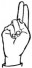 На ћирилици написано РАДОЈЕ НОВАКОВИЋ састоји се из 15 слова [?]. Исписано ћириличном једноручном азбуком за глувонеме: